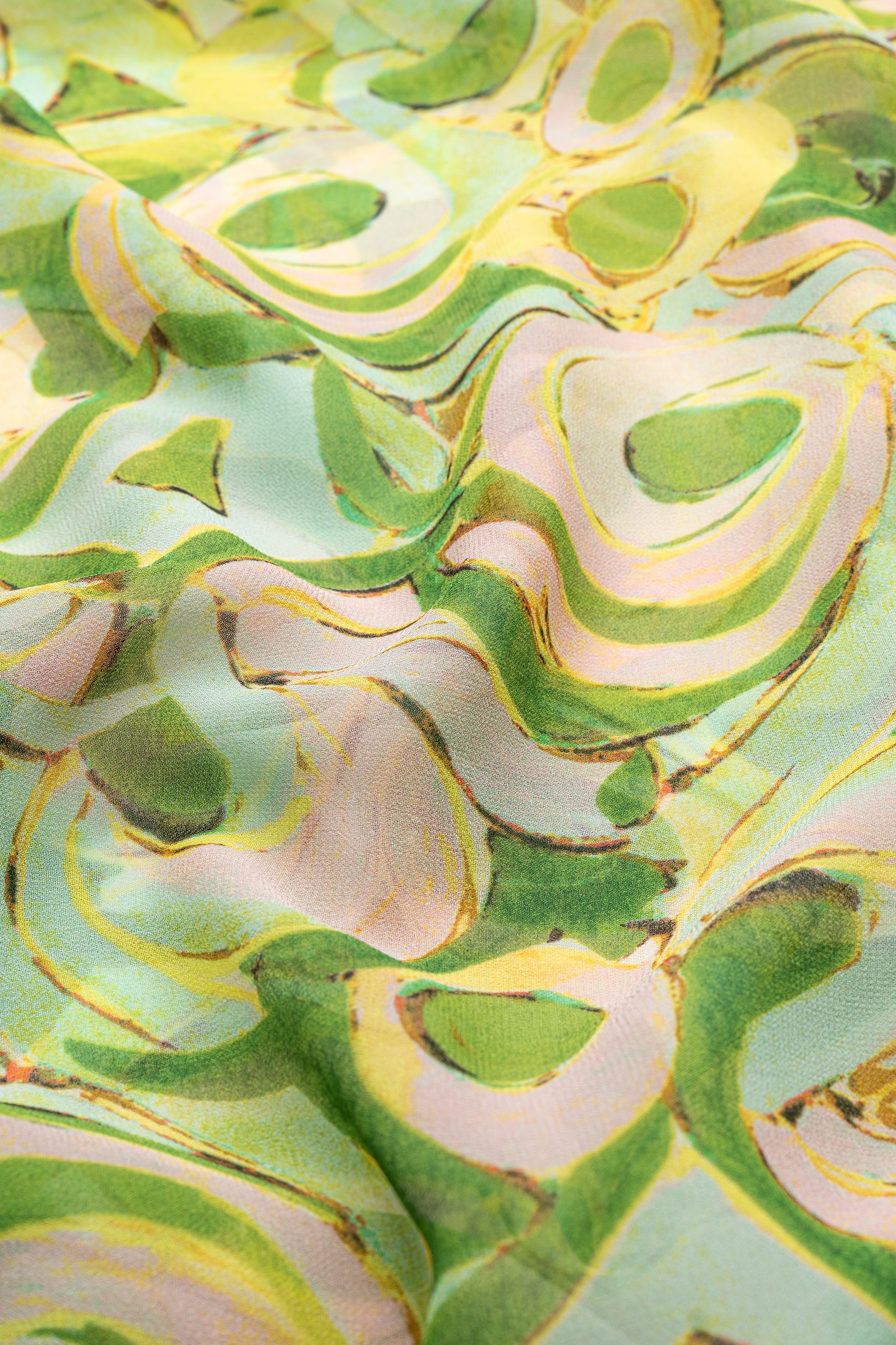 Go to your next brunch in style with the Avocado Toast Hijab. Featuring a playful, abstract print in soft green and pastel pink tones with cheerful yellow and aqua accents on our signature chiffon, this charming design is perfect for a fun weekend out and about.
