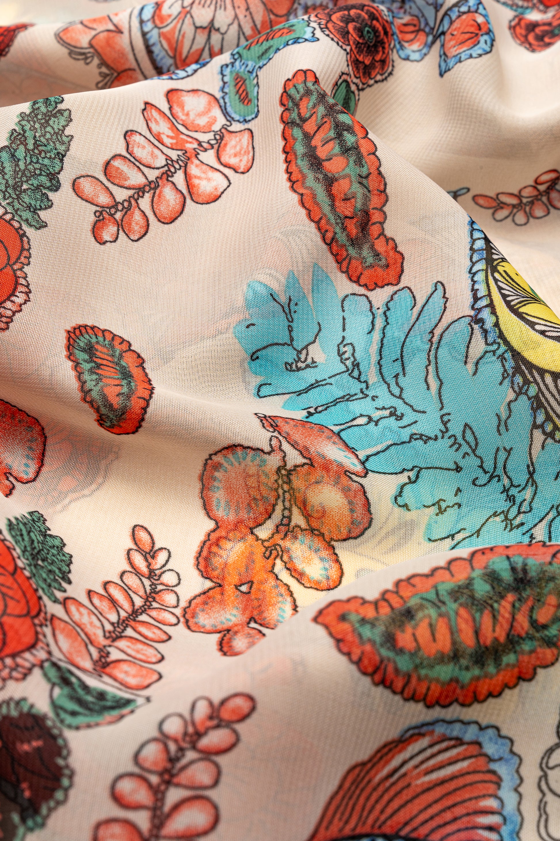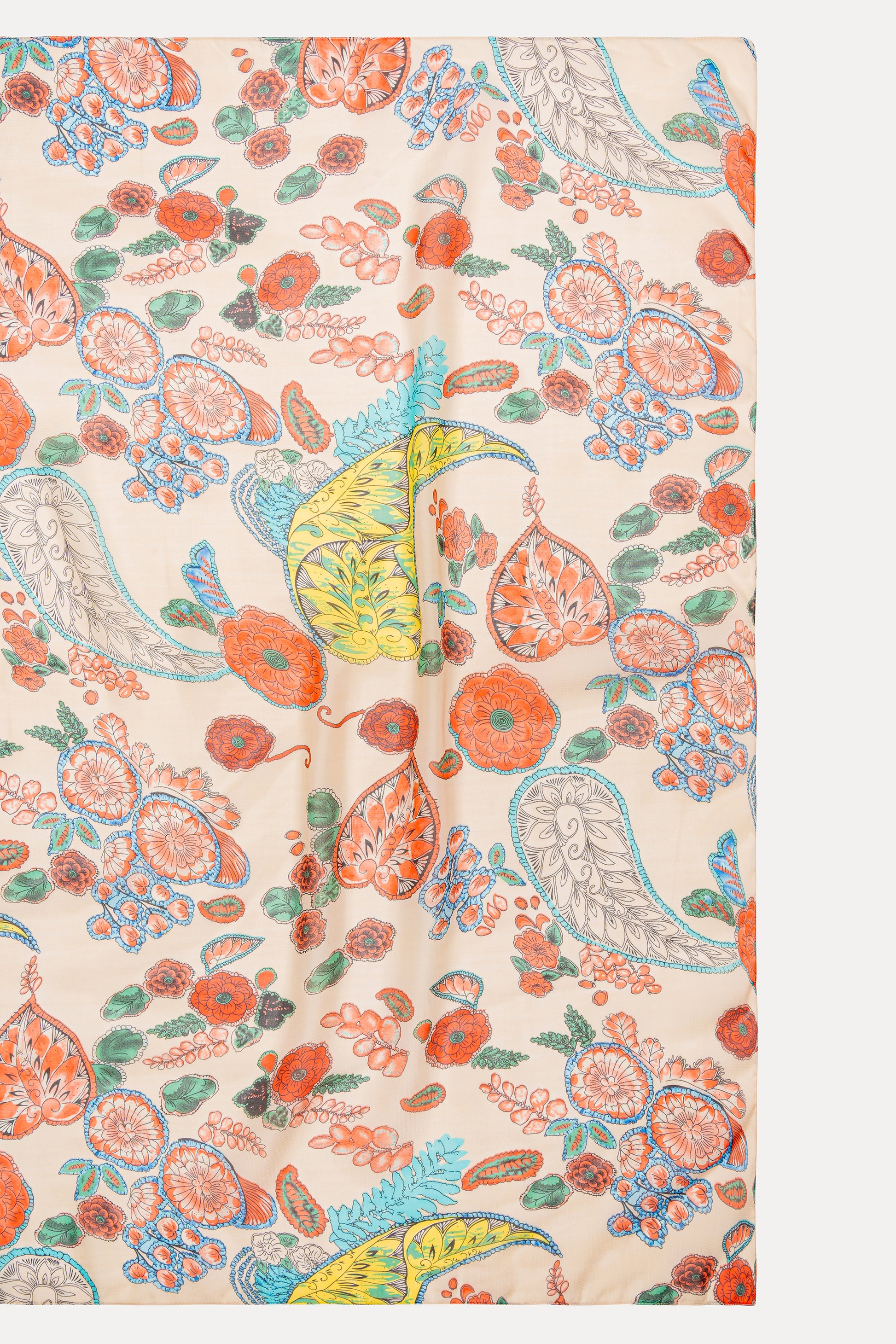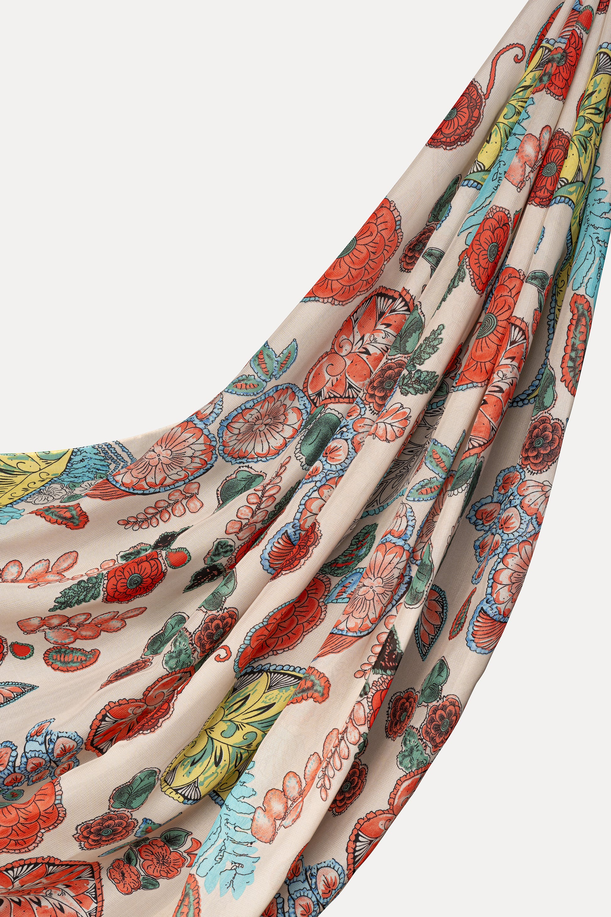 The Cherry Grove Hijab features a fun paisley and floral print in a bright palette on the soft beige background of our ever-so-slightly textured chiffon. We love this beauty with a coral tunic and jeans for an effortless look.