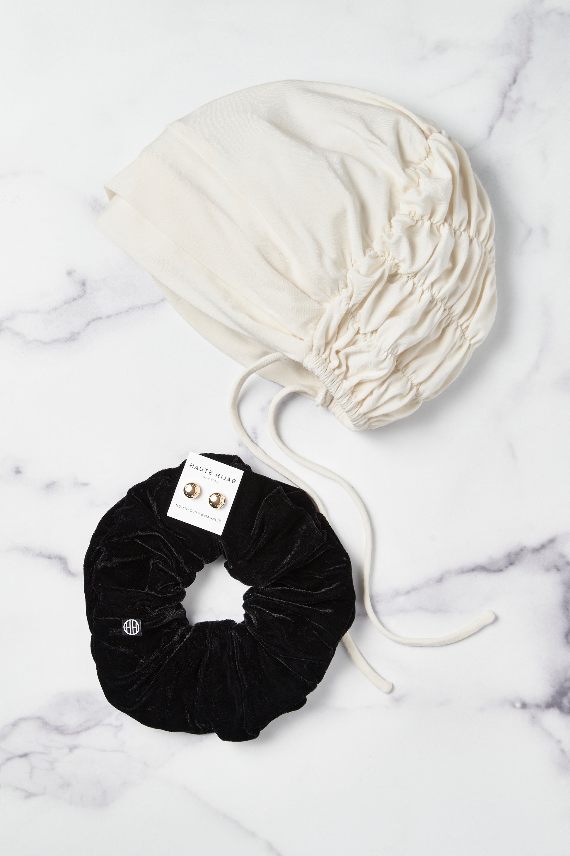 Good hijab days need great foundations. Our Criss-Cross Foundations Set includes 3 of our must-have accessories, including a Criss-Cross Underscarf in Ivory, a set of our No-Snag Hijab Magnets in Gold, and a small sized Shaping Scrunchie. It's the perfect way to treat a friend, or treat yourself.