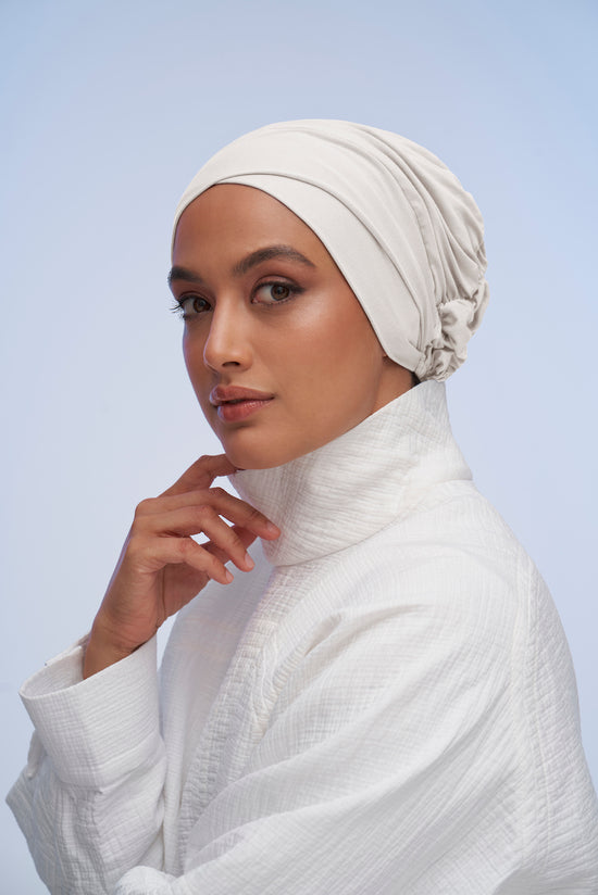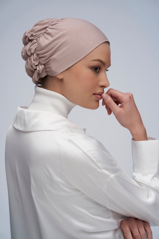 The color isn't quite as pictured. It looks like a light grey in the photo but in real life it's more brown with a hint of pink. I love it. I've have had.many compliments when wearing it. It really suits my cool skin tone and I feel really confident in it. Haute hijab has really helped my hijab confidence! Thank you