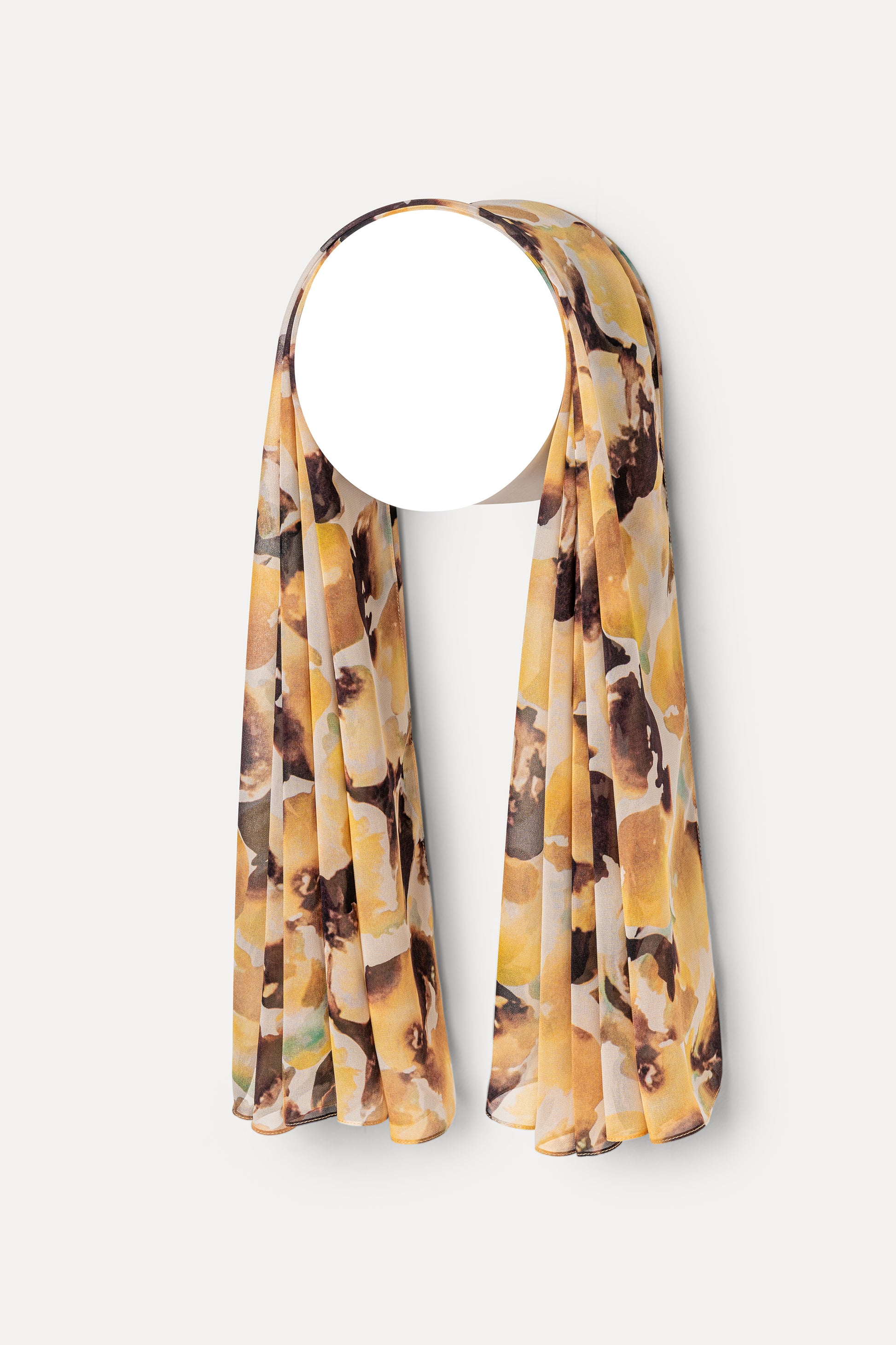 The Golden Magnolia Hijab features a lovely abstract floral print across our slightly textured chiffon. Pair this beauty with an ivory sweater and your favorite jeans for a casual yet stylish look.