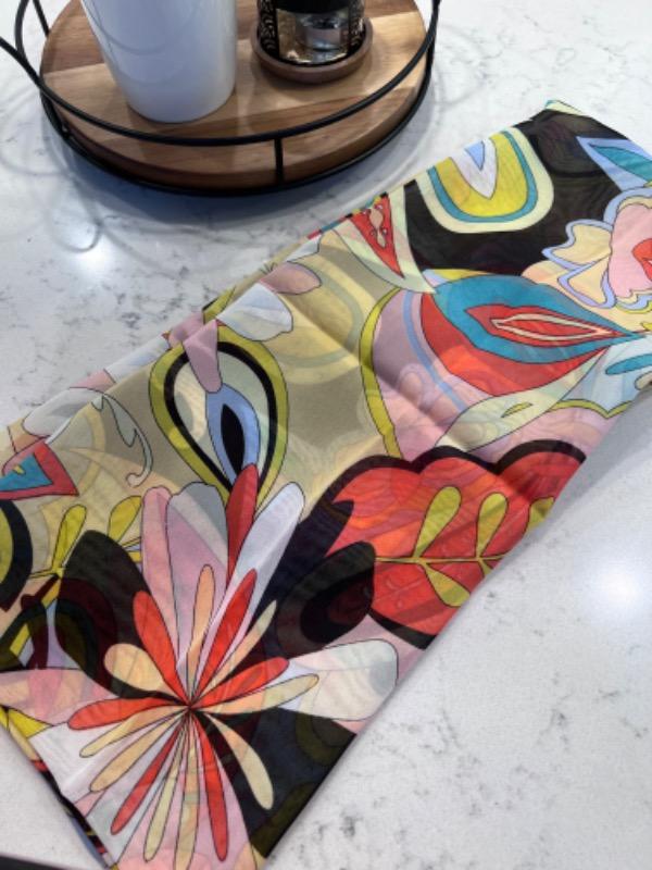 The Mod Garden Hijab features a bold and lively floral print on our ever-so-slightly textured chiffon. Enjoy this vibrant beauty on your next vacation or summer party!