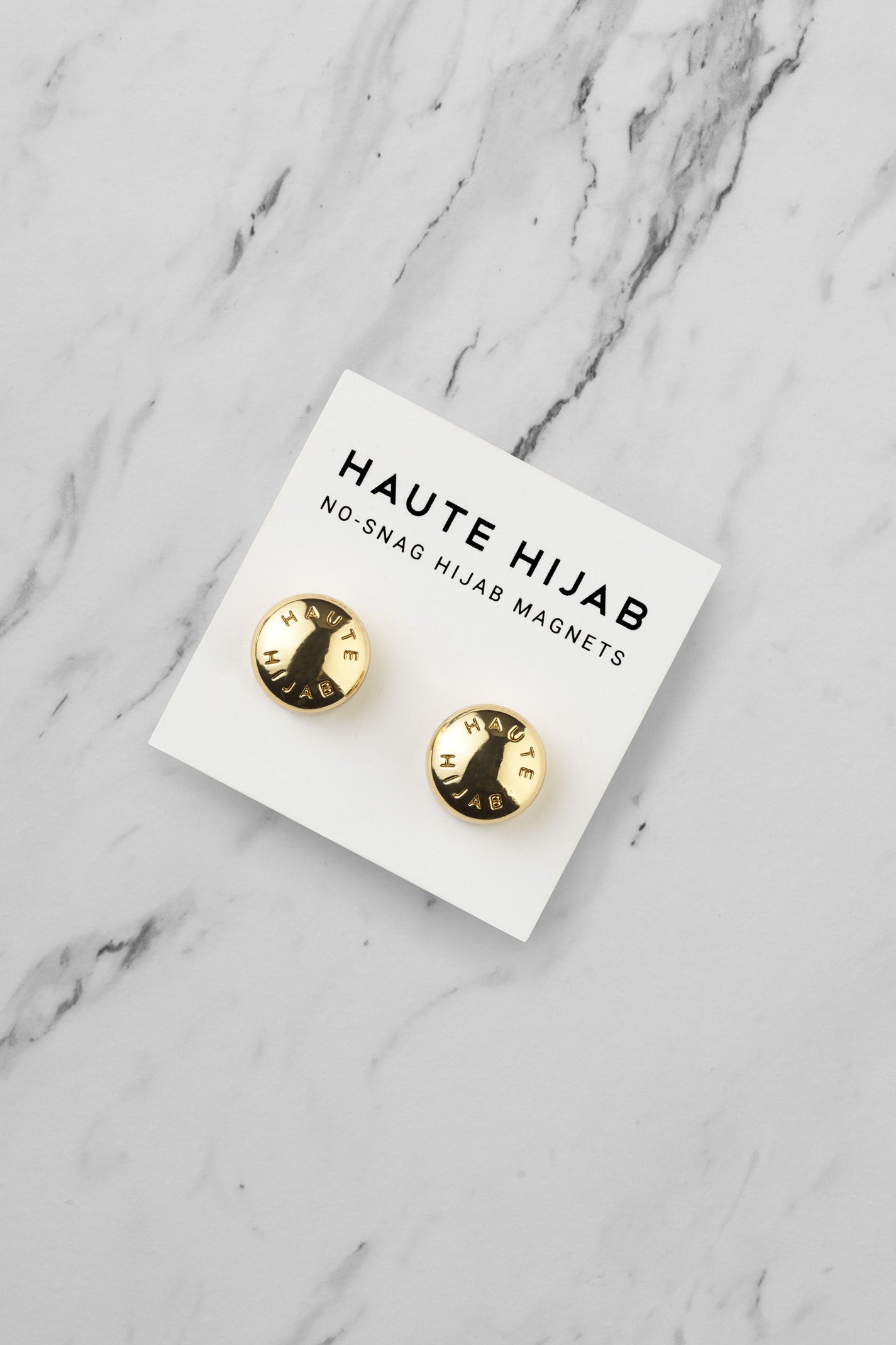 - Super-strong No–Snag Hijab Magnets in Gold to style your hijabs without the damage caused by traditional pins.