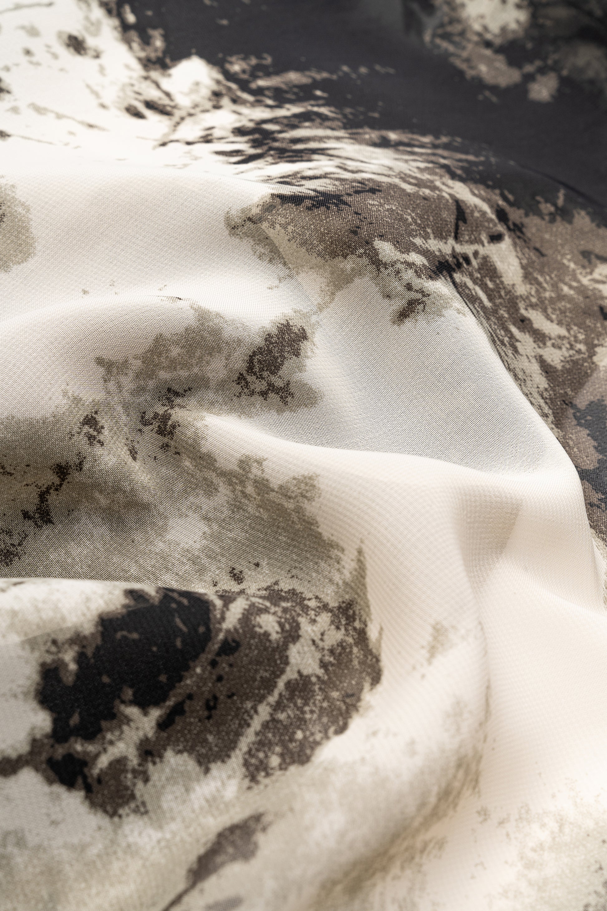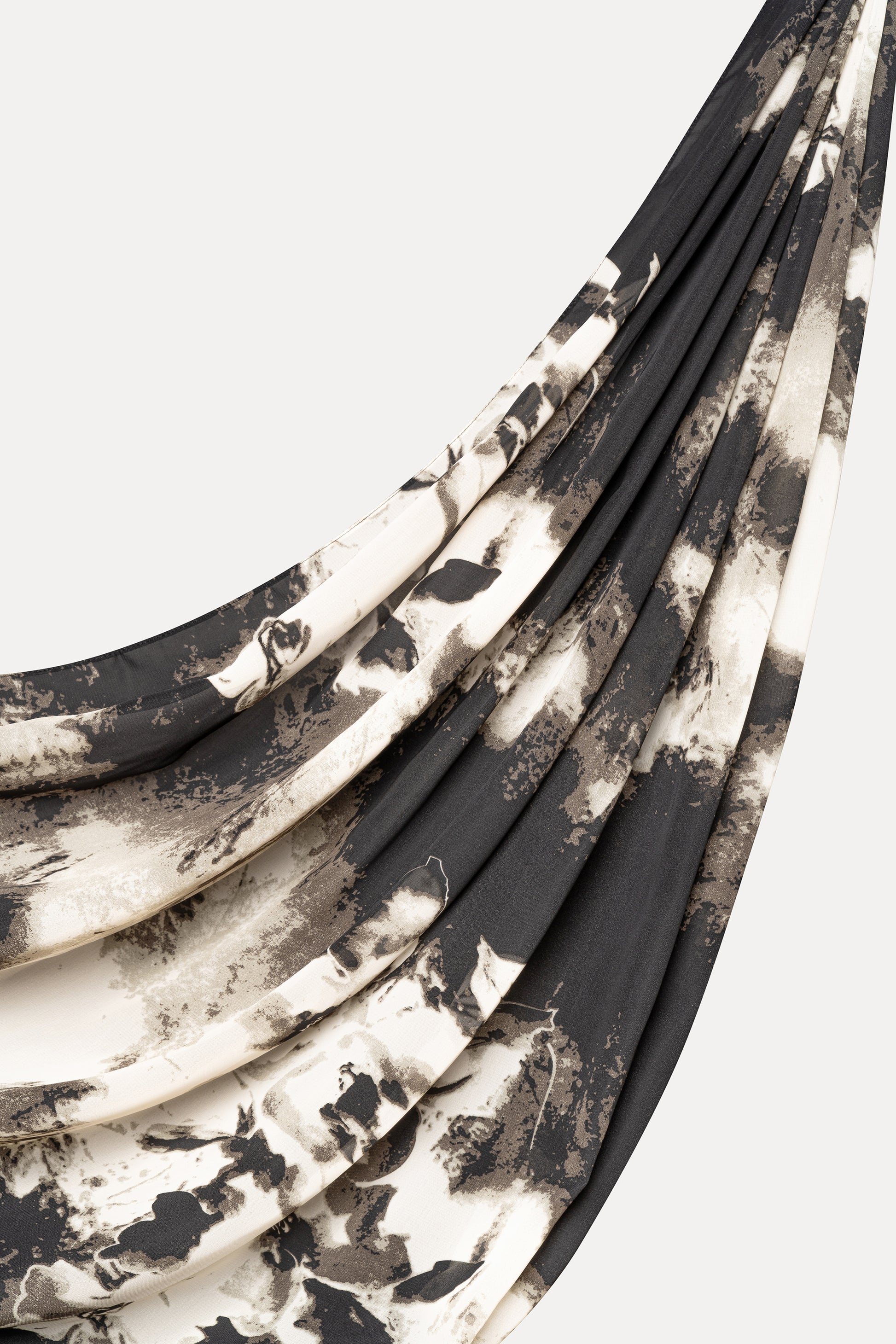 The Nostalgic Allure Hijab features a stunning abstract print in neutral tones on our ever-so-slightly textured chiffon with a hint of stiffness for more structured hijab styles. We love the versatility of this beauty making it a print you'll reach for again and again.