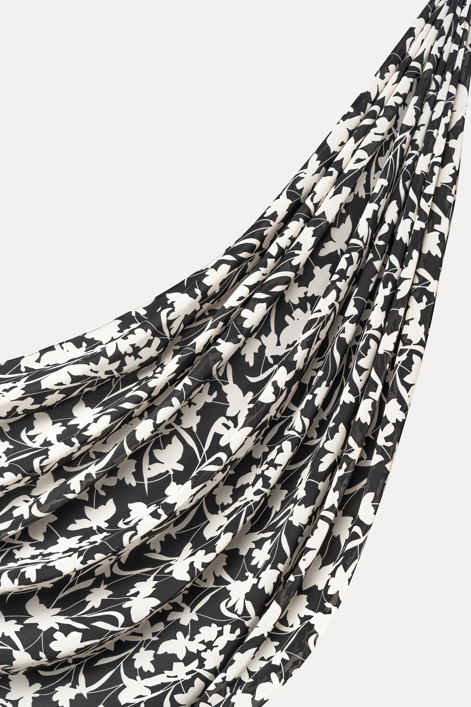 The Lunar Star Hijab features a versatile palette and a beautiful silhouette of florals across our fairly textured chiffon. We love it with an oversized black button-down and pumps.
