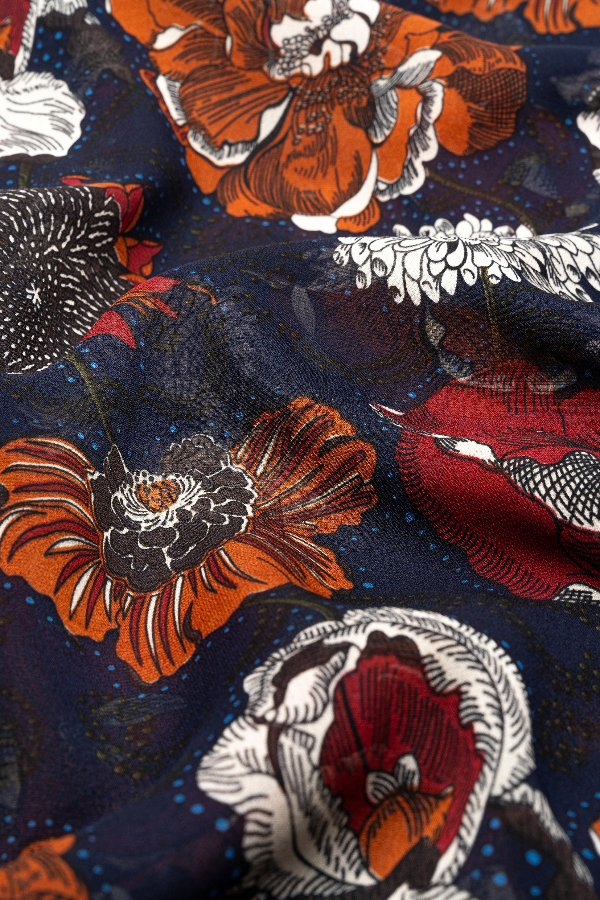 The Pumpkin Patch Hijab features rich florals in a lovely seasonal palette on our signature chiffon. We love this beauty with a classic brown trench coat and navy slacks for an effortlessly chic look.