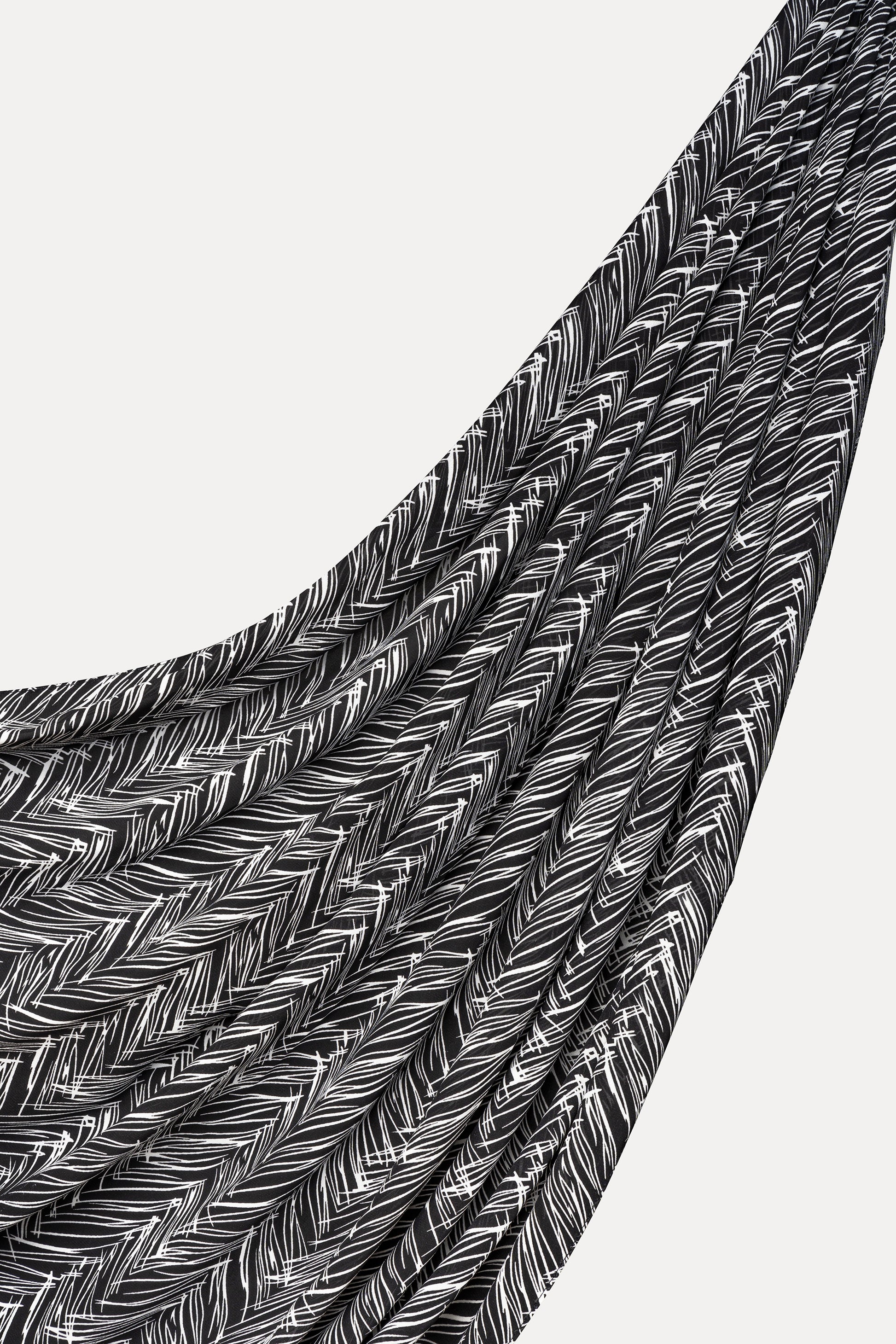 The Starlight Glimmer Hijab features an abstract sketch in a classic black-and-white palette on our fairly textured, slightly thicker chiffon. This versatile beauty will elevate your look with an understated touch of style and elegance.