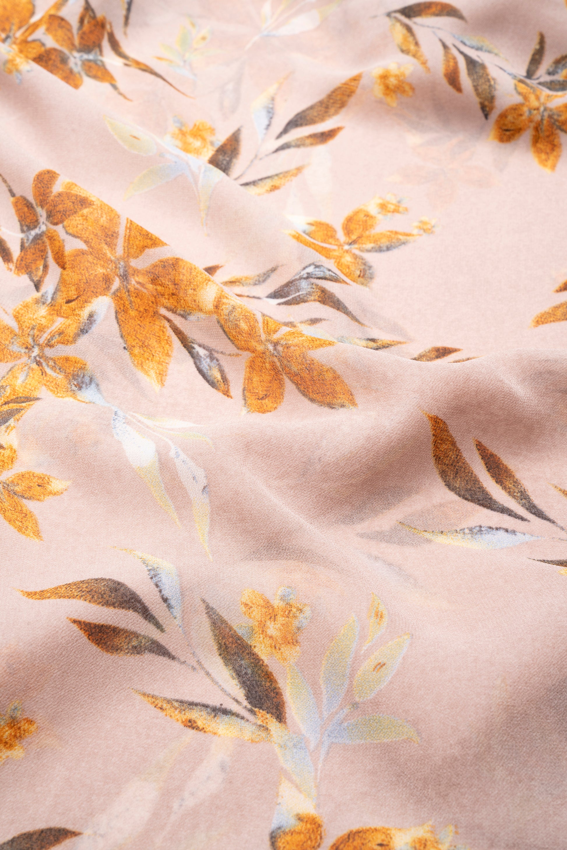 The Suede Blossom Hijab features a cozy floral print on our signature chiffon. Maximize your everyday style with the deep golden tones and soft neutrals of this beauty, paired with your favorite top and chunky boots. The options are endless with this versatile design.