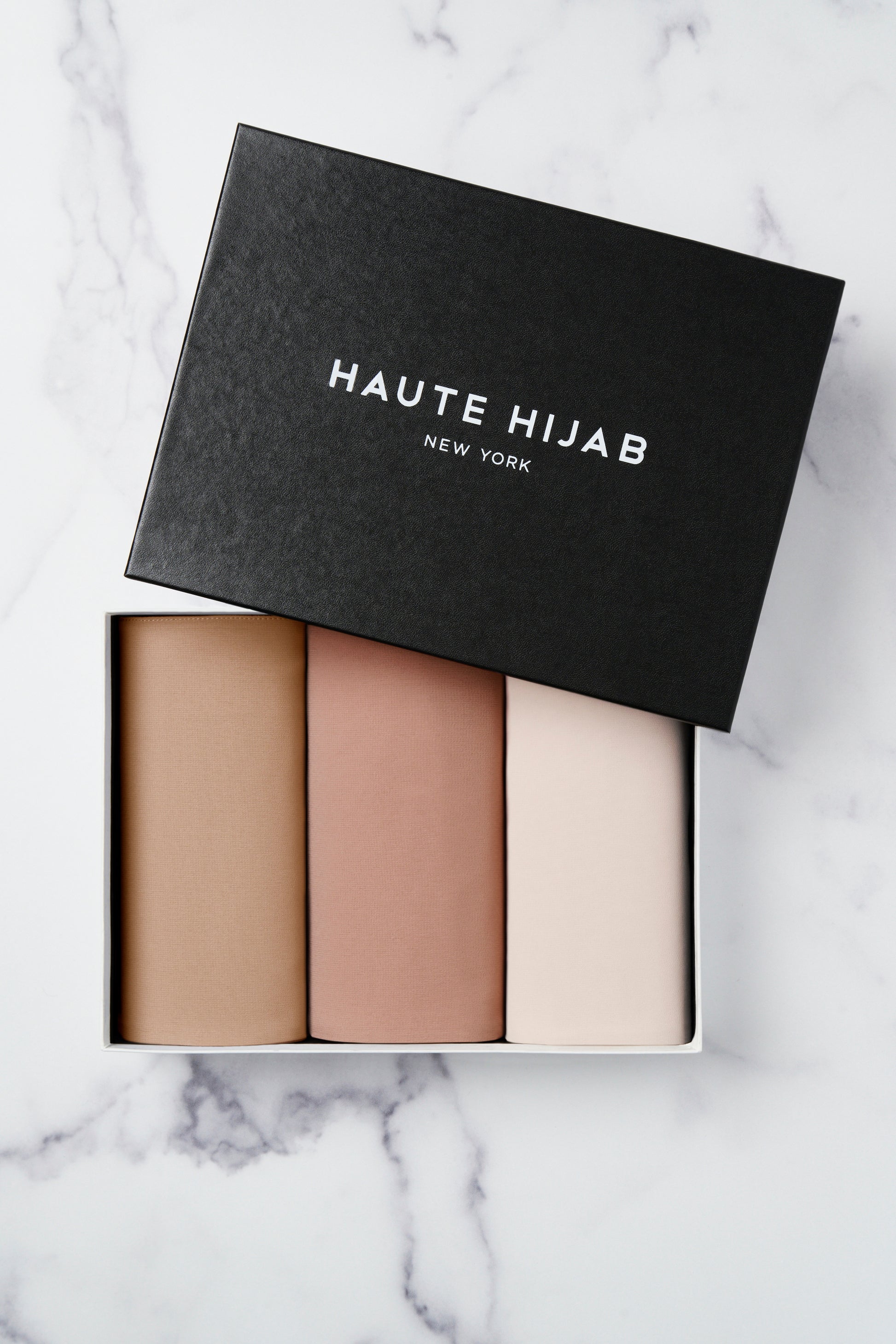 Whether you're building a new collection or adding to it, you can't go wrong with our best sellers! The VIP Hijab Set features our ever-popular Everyday Chiffon Hijab in Rosewood, Pearl and Blush in your choice of the rectangle or square size. Give yourself the VIP treatment and save $5 when you purchase this elite set!